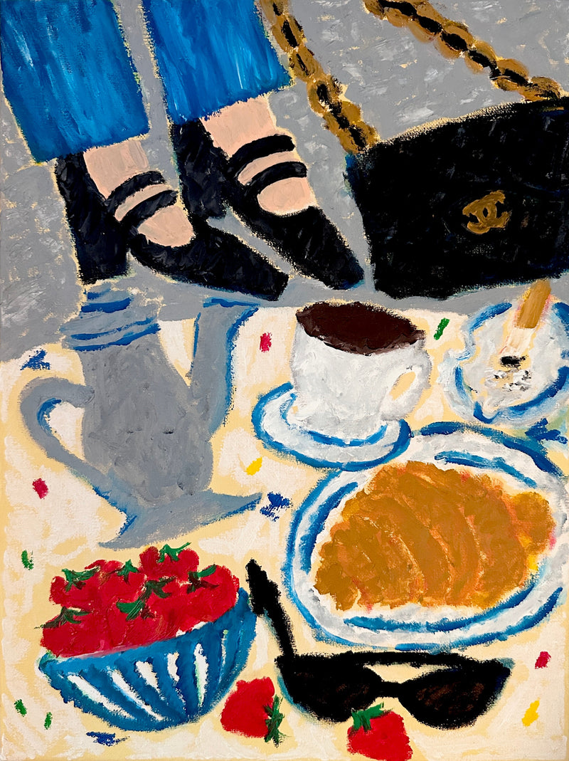 "Breakfast in Paris", 2025 | oil stick and oil on canvas, 30 x 40cm.