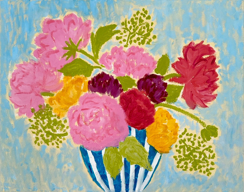 "Flowers In A Striped Vase", 2025 | oil stick and oil on canvas, 40 x 50cm.