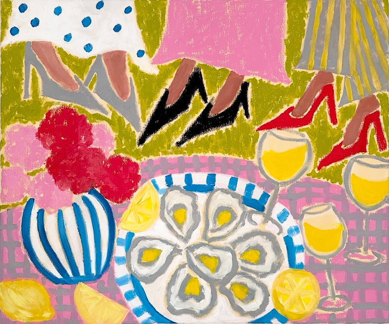 "Oysters and Wine", 2025 | oil stick and oil on canvas, 50 x 60cm.